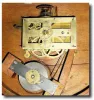 C.1850, 8-day fusee gallery timepiece, attributed to Marine Mfg Co, Hamden, CT This detached fusee lever movement is housed in a very nice mahogany case. The dial plate now has a paper dial glued on and someone has painted on: "C. Kirk's Pat." There is a G. Hills, Plainville, CT wall clock (item 238) in this sale that has the same movement. Both of these movements are unusual and made to robust standards. The hands are original, as is the lock on the bezel. Except for the questionable dial, a well made and interesting clock. Height 17 inches