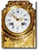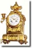 C.1850, French, by Bordier, Paris, for retailer C. J. Levy, 32 Rue De Lafolie Mericourt (on dial), a fine ormolu mantel garniture. The clock itself is profusely decorated with man's heads, goats heads and acanthus swags, the area under the dial with a mandolin and violin crossed, and the matching candelabra similarly decorated. The well made bell strike movement is signed Bordier; there are some small chips by the winding holes that have received some white paint (looks OK). Ticks and strikes. A very flashy set. Height 13 inches