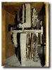 C.1950, English Lantern Clock, re-issue. The originals of these clocks were produced largely in the 1600s. Though there were Victorian copies of these, the clocks signed "Moore" were made in the 20th century, as fakes, and often sold as originals. This is a factory produced clock, the dial signed: Tho. Moore, Ipswich. It now has an iron OG weight that is insufficient to operate the clock, however weights are available from various vendors. From storage, dirty but sound and complete. The clock itself is 14 inches, and including the pendulum is 48 inches.