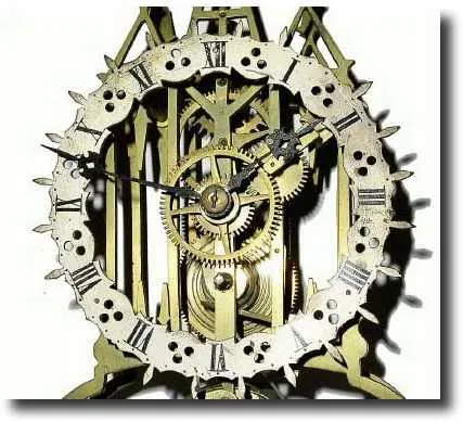 C.1900, English, Fusee Skeleton Clock, on a marble base, LESS dome.