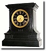 C.1900, French, Chiming on 8 Bells, large black Belgian marble clock. Unlike lot 424, where the chime movement is added on to a strike movement, this movement was originally designed as a 3 train, but with the bells underneath, rather than above. When new, this was a very elegant clock; it has lost its original minute hand, and the hand shown in the photo does not have a proper French hub as required; also hammer tip for strike arm missing. It weighs 65 pounds and this clock must be picked up in person; no shipping. The marble case has a few chips and scrapes but is overall good looking. The bells sound great. Potential for the right person. Height 18 inches