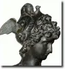 C.1890, French, Bronze Statue of Perseus, holding the bleeding head of his decapitated Medusa (all with great detail). According to Greek mythology, Perseus presented the head to Athena, goddess of wisdom and war. A brass support has been screwed on to Perseus' arm to hold a swing clock. The blade of his sword is missing, however the hilt is there and it should be no trouble to add a blade. The statue is mounted on a stepped dark green marble base (some minor chips) with ormolu feet and the combination is quite heavy. Rear feet on base have been soldered. Use as a swing statue or restore as an impressive (albeit gruesome) bronze. Height 30 inches There is no reserve on this but feel it must be worth at least