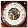C.1890, French, Clock/Barometer. This is the nicest looking of these models in the sale. At some point in its life the original movement got separated and a good clockmaker found one that bolted in correctly, except that the winding arbors were a little farther apart. So the wooden dial had to be plugged and 2 new holes drilled. This was done some time ago, and very well stained, but it is apparent on close inspection; one tapered glue block missing from right side. So we leave it to you, the average person would never see these and it will certainly add to anyone's decor. Height 38 inches