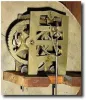 C.1831, Munger and Benedict, Auburn, New York, Mirror clock, Empire style with ironing board top. The mahogany case with spiral side columns to the door. Most of Munger's movements were strikers, and it is unusual to see a single train movement. This very clock, tablet with several cracks, and faded mirror, is pictured in Palmer's Book of American Clocks, page 81 (along with details of the movement). Mr. Cooperman was very proud of this clock, and it hung along the wall of his stairway. Height 31 inches