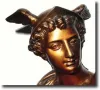 C.1890, French, Bronzed Spelter Swinging Mystery timepiece (swinger), in excellent condition, the statue of Mars with original finish. There is minor wear to the highlights and a few scratches that have turned dark, but it has an overall nice look, the "winged messenger" complete with wings on both shoes and his hat. The canister type clock arm has been cleaned and seems in good running order. The porcelain dial is perfect and is signed "H. Luppens, Bruxells". Height 29 inches