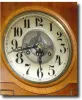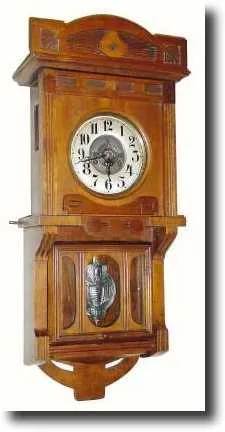 and rather than a free swinger, with a fancy molded door over the pendulum. The dial center and pendulum have fancy Nouveau designs, and you can see t...
