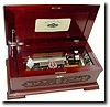 C.1890, Swiss, Mermod Freres, Inter-changeable cylinder music box (one cylinder only). This is a Peerless Forte-Piccolo Box with wonderful tone and crisp tunes. The original tune card for the one cylinder is present. The movement is nickel plated and includes Jacot's safety device, tune indicator, zither attachment and a let-down feature. The solid mahogany case has a carved front and inset panel top, and retains orginal lock and key. This box is a joy to listen to, cleaned and in good operating order. Cyl 9 inches, wide 24 inches, Height 8 inches .