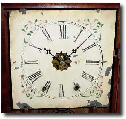 Good case in unrestored condition. There are a couple of veneer chips near the door knob and a some bubbling at the top and on the door. The lower tab...