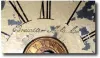 This cute little model with rippled door is in clean condition with original tablet and the applied rosewood graining is superb. It is uncommon to see such a small lyre front. The dial has suffered from paint loss but retains it's original signature. The tablet shows signs of wear, but is still very good. There is wonderful little label inside the case. The ladder movement is a single strip of brass with a ribbed edge. The alarm lifting piece has been restored at some time (well done). With embossed pendulum. Height 11 inches