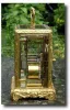 An early French carriage clock c 1835, in a gilt rococo case. The clock is signed for Hry Marc, the retailer, but the movement and platform are by Jules. The platform has a sub-frame, divided lift escapement with a helical spring. A similar escapement is shown on Page 73 of Charles Allix's book and this clock appears in a book by Eric P Smith. The clock strikes the hours and half hours on a bell via a countwheel.