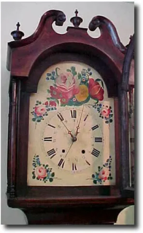in a solid cherry case. The painted dial features a typical Pennsylvanian motif of painted flowers, and a center sweep calendar hand. The 8'3Ó height ...