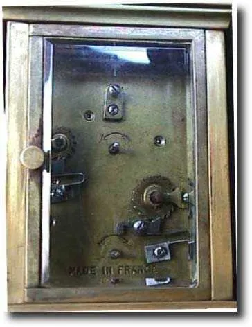 Anglaise French Carriage Clock, circa 1920. A very nice, small, French carriage clock, 8 day, time with alarm. In a simple , elegant brass Anglaise case, a style introduced about 1880. A very well made carriage clock with a nice patina. The movement has a platform escapement. Movement requires cleaning and adjusting. The dimensions of this clock are 5" x 2.75" x 2.25". Running duration 8 Days