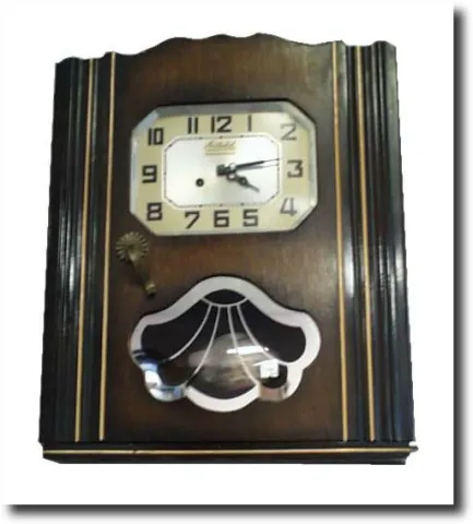 Art Deco French Wall Clock Typical design of the period. It has arabic numerals, and a silvered glass to match.