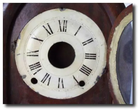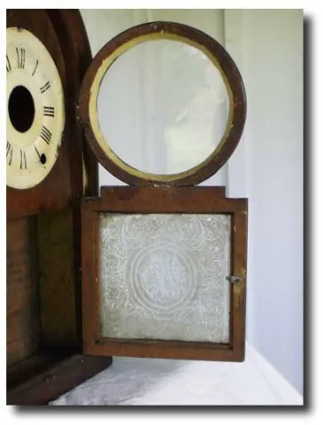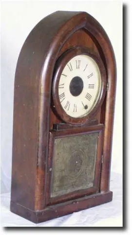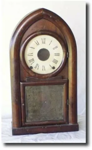 Beehive clock case, 19th century Case: Wood veneer. Very good glass; 19" high Works: None Condition: Case; good Works; missing.