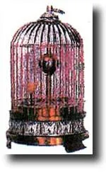 Bruggeman Advertising Novelty Clock Very unusual Bruggeman advertising clock, of plaster paris construction in birdcage design, with a date of 1901. Time only movement in good running condition. Approximately 18" high. Dimensions: 18"h x 12"w x 12"d