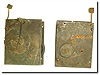 Both are missing minute shaft and motion works, one less count wheel. Inside trains both intact and with verges. Great parts for the restorer. Plates measure 5 x 6' One bid for both items,