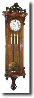 C.1850, Austrian, Late Biedermeier case, now with a C.1880, 3-weight grand sonnerie movement. Note the seatboard fits in the slides, but is too narrow, and for safety, a wider seat should be made, possibly you could add 1/8 inch to each side to get the strength you need. In any case, the case is attractively veneered with rosewood; has a few nicks and bruises, but is quite attractive. The movement is well made and with a good dial, but has replaced hands (old) and is dirty and will need service. Note pulleys later, and glass is cracked. If this had been all original, we would have expected it to bring around $4500. Height 54" $1750-2250