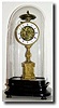 C.1850, French, Quarter Striking Candle stand clock under dome. The movement is signed "Pons", and with the retailers name, Potonie¢ Leon, Paris fired into the dial and also stamped into the movement. The pendulum is a later replacement, but this clock is otherwise in excellent original condition, with nice porcelain dial (with blue numerals), great gilding on the ormolu stand and no cracks nor chips in the dome. Height 14" Reserve $1900