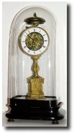 C.1850, French, Quarter Striking Candle stand clock under dome.