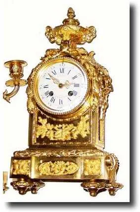 32 Rue De Lafolie Mericourt (on dial), a fine ormolu mantel garniture. The clock itself is profusely decorated with man's heads, goats heads and acant...