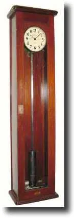 This is a DC power clock of the highest quality. The seconds beating invar pendulum pulls a trailing link that rotates a large gear with 15 teeth; tha...