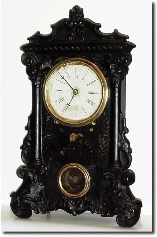 This clock has been in storage for some time, and is in original condition. The black enamel has some chips and scrapes and most of the accent paint i...