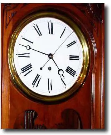 is a very fine example in walnut. The case may have been refinished a long time ago. The 12 inch porcelain dial is perfect with original hands. Clock ...