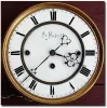 This is a very attractive serpentine clock; note the fretted top was recently repaired and repolished by a good cabinet maker; repairs disguised with black paint. Some scratches inside, on the case where it was transported with the weights in, will need attention. The well made 72 beat movement retains original dial, hands, pulleys, weights, etc. Note the chapter ring has two spider cracks (but no chips) signature unreadable. Pendulum is good with no dents and painted beat scale is original (some paint loss); good old crank as well; key lock case. Note superb pulleys with petal shaped spokes. Despite flaws, a very good clock; height 53'