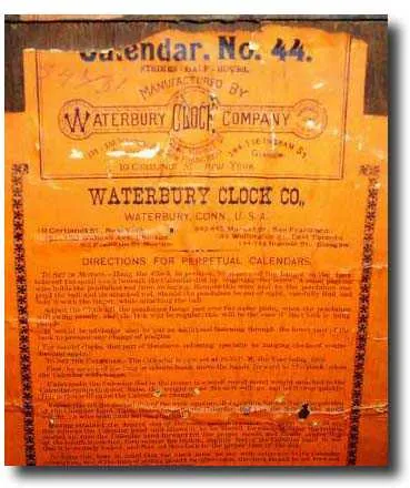 C.1890, Waterbury, Calendar No. 44 in walnut, with restorations.
