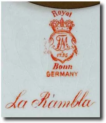 C.1914, Ansonia, Royal Bonn, La Rambla, porcelain china clock in very good original condition.