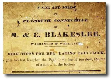 C.1832, M. and E. Blakeslee, Plymouth, Conn, 30-hour short-pendulum