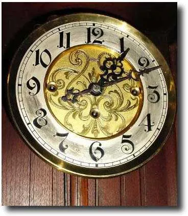 wall clock, with matching dial center, weights and pendulum, and in good original condition. The only missing item is the very tip of the top leaf on ...