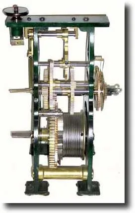 This clock was used as a window display by a clock dealer and is complete with pendulum, cable and weight (no stand however). The frame retains origin...
