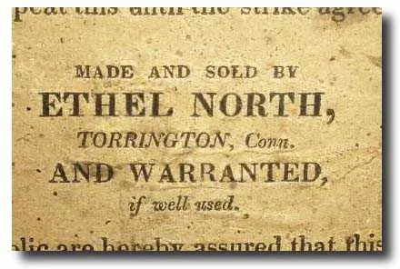 C.1825, Ethel North, Torrington, Conn, narrow case 30-hour
