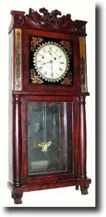 deck clock with mahogany half columns below and mirrors inset at top. Although it is unusual to see the mirror in the back of the case, it appears on ...