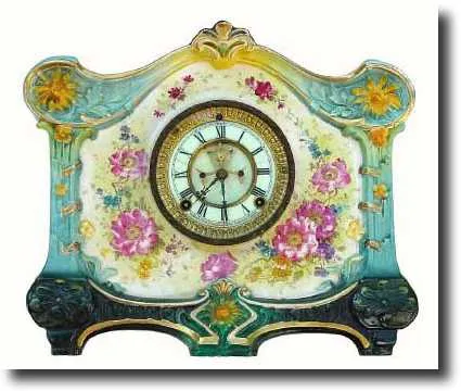 original condition with strong Bonn trademark on rear. This is an attractive clock, light blue base color, with forest green accents, and with 3 promi...