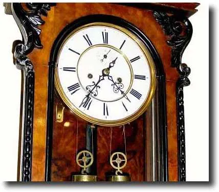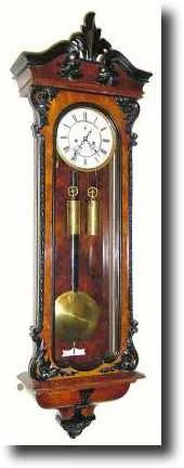 good original condition. Retains original dial, hands, pendulum, built in top. The case is of burled walnut, book-matched on the case back.. The contr...