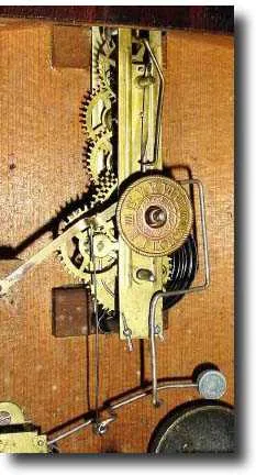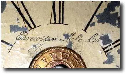C.1852, Brewster Mfg. Co. miniature lyre front alarm timepiece.