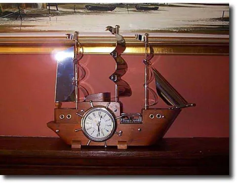 with chrome sails and red lights at the bow and stern. It has a vintage electric clock which works perfectly. This ship clock is in outstanding condit...