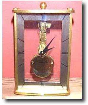 It has an 8-day visible movement with 7 jewels. The gold tone case measures 4 inches high, 3 inches wide and 1 inches deep. The case is in very good c...