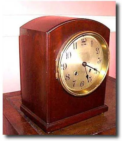 This is an all-original Chelsea shelf or mantel clock in excellent condition. The case is mahogany and stands on four small brass ball feet. It has a ...