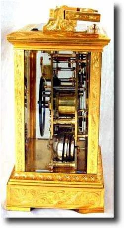 A giant three-train Le Roy et Fils Carriage clock in an engraved gilt case, c1880.