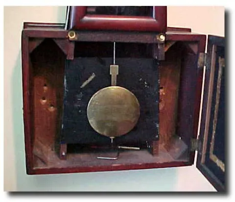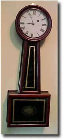 Weight driven banjo by Horace Tifft North Attleboro Mass. Mahogany case with original time only movement and signed "HT" weight. Good tablets with som...