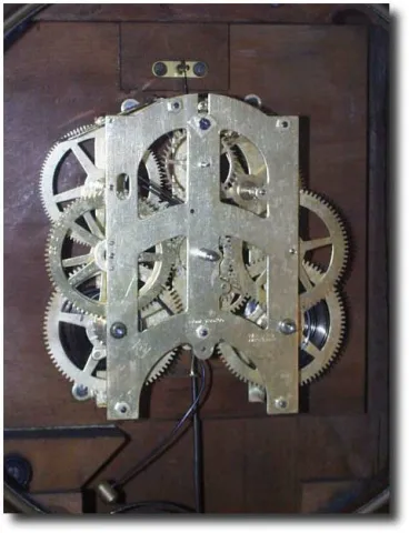 Case: Walnut veneer case; retains original finish and lable; 32" high Works: Spring driven 8 day Time and Strike movement. Reference:Ansonia Clocks by...