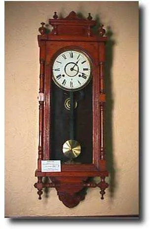This fancy oak wall clock was made in the United States by the Ansonia Clock Co. and the model name is "Queen Elizabeth". In nice original condition. ...
