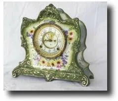 Ansonia Royal Bonn cases were imported from Bonn Germany. Case: ROYAL BONN CHINA 11.5" tall Works: Ansonia Visable Escapement 8 day time and strike on...