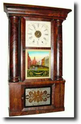 C.1845, Elisha Manross, Bristol, Conn. 8-day hollow column shelf clock.