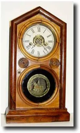 1-Day, time, strike and alarm, in generally clean condition with original "horseback rider" gold leaf tablet (re-blacked from rear). The rosewood case...
