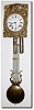 C.1870, French, Morbier 2-weight, as-found. Heavy Morez construction with repeat of strike at 2 minutes after the hour; large meter pendulum with gridiron and lyre. The cords need replacing. The clock took a tumble and there are spider web cracks in the porcelain dial. The dial is signed Pellerin et Fils, a" Charleval. The calendar wheel and hand are absent; the movement, although dirty, is otherwise complete and sound. German weights are later, but seem heavy enough to run the clock. Anchor escapement. Dial 9', Height 54'