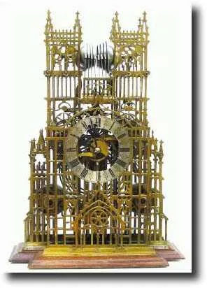 3-fusee, 8-bell quarter chime skeleton clock in the form of Westminster Abbey. Extensive details on both Evans and this frame design can be found in D...